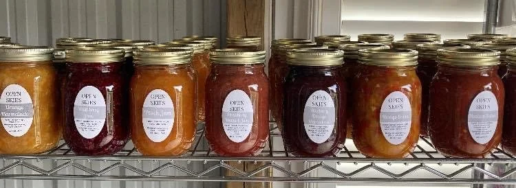 Some of our popular preserves are: Raspberry Jam, Pickled Serranos, Grape Jelly, Mandarin Ginger Marmalade, Peach Jalapeno Preserve, Red Pepper Jelly, Blueberry Rhubarb Jam and Candied Jalapenos - too many to list!